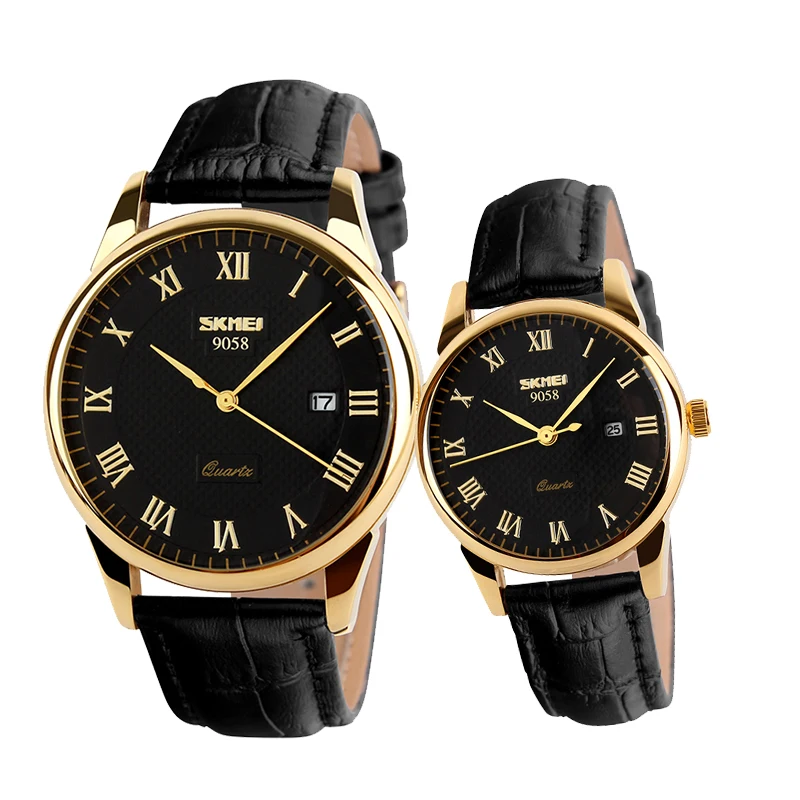 Name: SKMEI-relojes de cuarzo para hombre y mujer, pulsera de lujo con correa de cuero, 9058