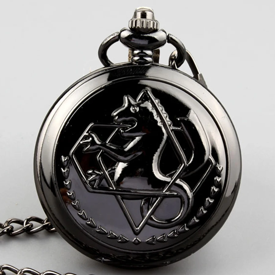 Name: Fullmetal Alchemist-reloj de bolsillo Vintage, grabado de Anime, Fob, relojes con cadena colgante, esfera de Número Romano de cuarzo, negro, venta al por mayor